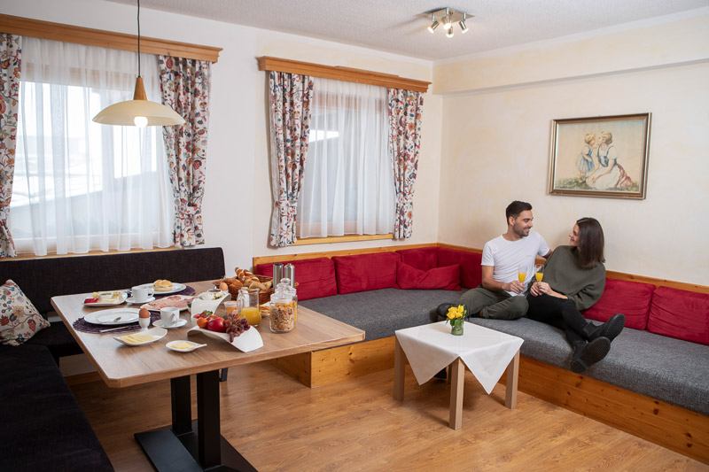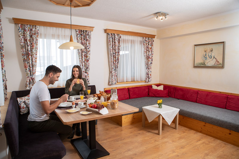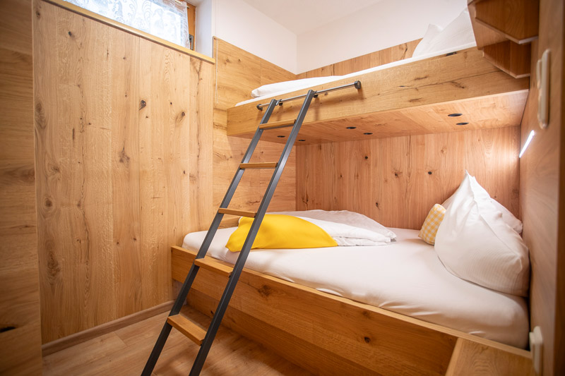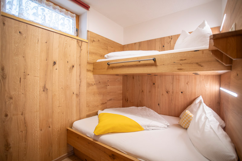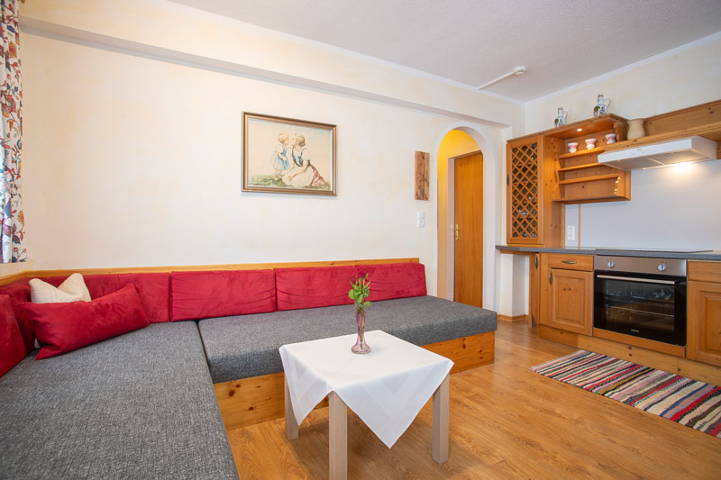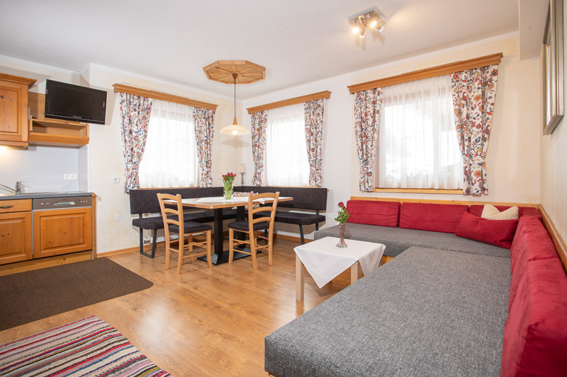 Die Wohnung Tuxertal ist geeignet für 4-7 Personen, befindet sich im Erdgeschoss und ist ca. 55 qm groß. Diese Wohnung besteht aus 2 Schlafzimmern. Ein großes Schlafzimmer mit einem Doppelbett, ein kleines Schlafzimmer mit einem Doppeletagenbett (auf Grund der Hanglage ist das kleine Schlafzimmer mit Schachtfenster). Wir haben die Wohnküche mit einer gemütlichen Sitzecke eingerichtet. Die Echtholzküche ist mit einer Spülmaschine, Mikrowelle, Backofen, Espressomaschine, Kaffeemaschine, Wasserkocher, etc. ausgestattet. Das Ecksofa ist auch als Schlafcouch für 2 Personen geeignet. Weiters befindet sich in der Wohnung ein Fernseher mit Radiofunktion und USB-Host, auf Wunsch wird ein DVD Player zur Verfügung gestellt. Badezimmer mit Dusche und WC.